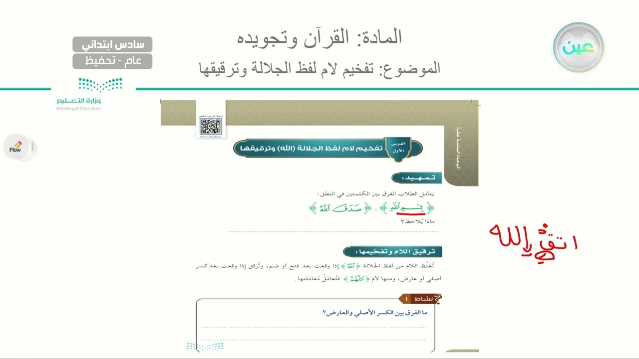 فيديو شرح درس تفخيم وترقيق لام لفظ الجلالة (الله) وترقيقها